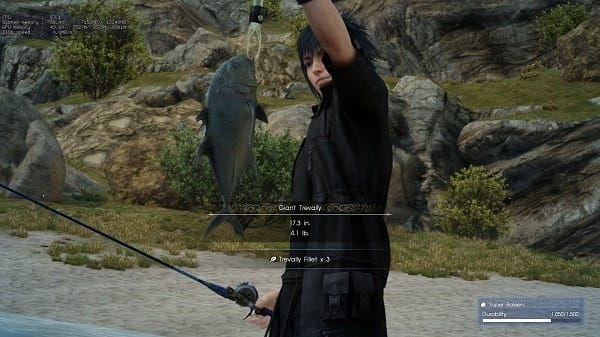 There are quite a few mini-games within Final Fantasy XV. Many of them actually spawn from each of the main character’s unique skills. For example, Ignis cooks fantastic meals, Prompto is the resident photographer, and Gladio has a neat survival skill, which means he randomly picks stuff up after a battle.  Noctis skill is fishing.  You fish at certain docks in the world and have to balance reeling in a fish against the tension (and health) of your fishing line.  It’s not the deepest fishing mini-game in the world, but it is there if you want it.