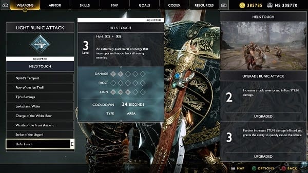 You actually unlock new moves by just buying them in the menu. There’s a quick video of how the move looks or what it actually does. There aren’t a ton of moves to unlock, each tier (of five) only has three or four moves in total. Most of the new moves I never really used much either, instead, I focused more on the Runic Attacks.