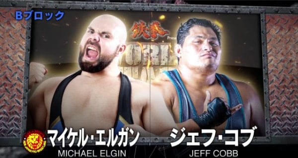 One of the fun aspects of the G1 Tag League tournament is the fact that we get some random but fun pairings. Case in point Michael Elgin and the debuting Jeff Cobb (or as many know him as Matanza in Lucha Underground). These two have encountered each other at opposing side of the ring in Pro Wrestling Guerilla (PWG). Earlier this year at Only Kings Understand Each Other, Elgin and his partner Brian Cage (The Unbreakable F’in Machines) had a barn burner vs Jeff Cobb and his bro (pun intended) Matt Riddle (The Chosen Bros).